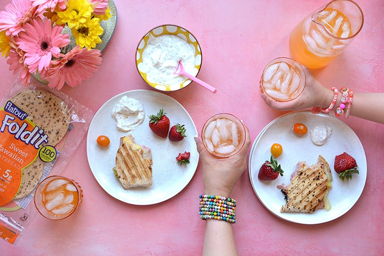 I am soooooo excited to share these new Sweet Hawaiian Foldits from Flatout with you. They are sweet. They are delish. And they make the perfect summer paninis. OH, and did I mention, they're only 100 calories? ... Read more » about Hawaiian Paninis with Grilled Pineapple